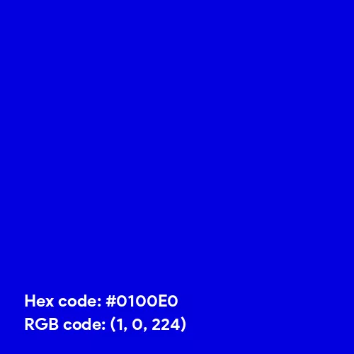 More Color Codes| Hex Code | #0100E0 | |