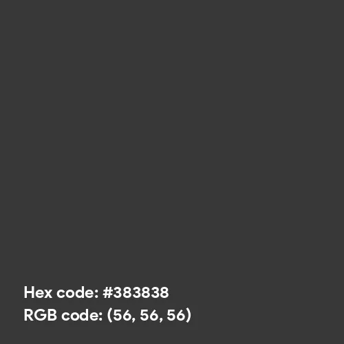 The color name of hex code #383838 is Onyx. The RGB values are (56, 56, 56) which means it is composed of