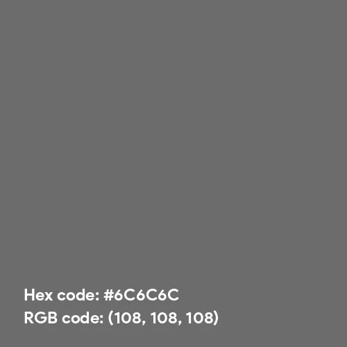 The color name of hex code #6C6C6C is Dim Gray. The RGB values are (108, 108, 108) which means it is composed of