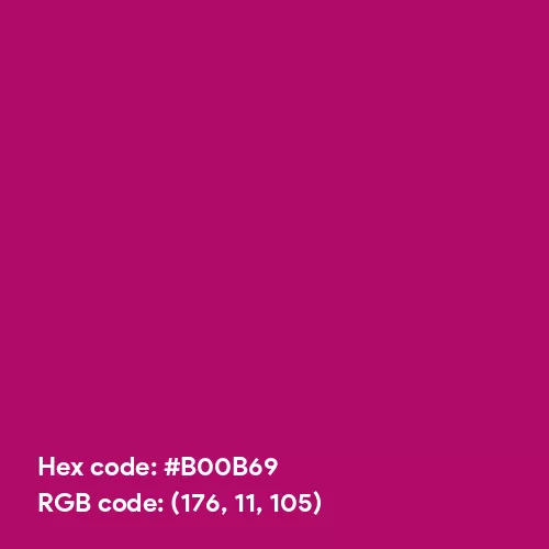 The color name of hex code #B00B69 is Jazzberry Jam. The RGB values are (176, 11, 105) which means it is composed of
