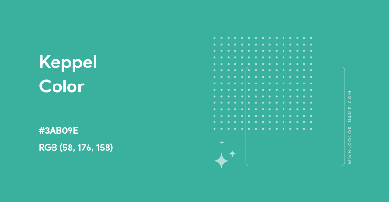 Keppel has the hex code #3AB09E. The equivalent RGB values are (58, 176, 158), which means it is composed of 15% red, 45% green and 40% blue. The CMYK color codes, used in printers, are C:67 M:0 Y:10 K:31. In the HSV/HSB scale, Keppel has a hue of 171°, 67% saturation and a brightness value of 69%.