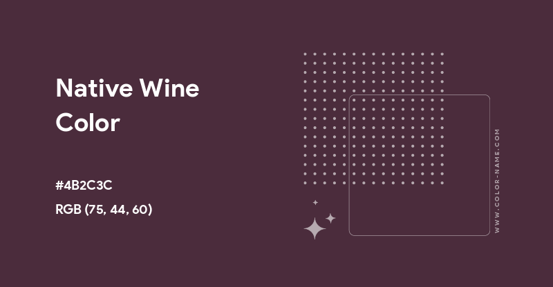 Native Wine has the hex code #4B2C3C. The equivalent RGB values are (75, 44, 60), which means it is composed of 42% red, 25% green and 34% blue. The CMYK color codes, used in printers, are C:0 M:41 Y:20 K:71. In the HSV/HSB scale, Native Wine has a hue of 329°, 41% saturation and a brightness value of 29%.
