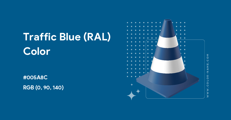 Traffic blue is from the RAL Classic list and is numbered 5017. It is not included in the web colors list and, therefore, cannot be used by name in HTML and CSS code. However, the color can be applied to web pages via its hex, RGB and/or HSL values.