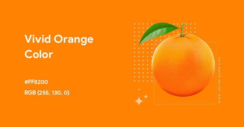Vivid orange is a bright reddish orange color which can be applied to web pages through HTML and/or CSS via its hex, RGB, CMYK or HSB code.
